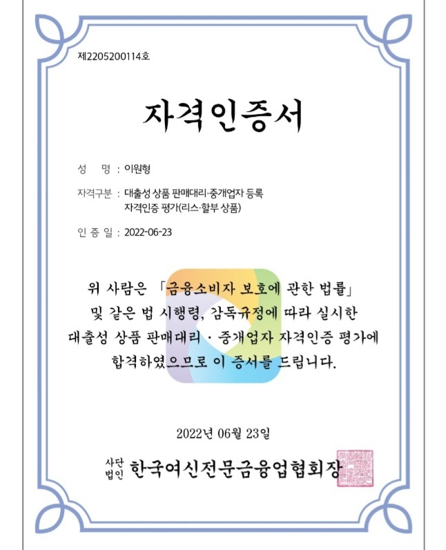 해외이민일정으로 인해 저희 블로그를 보시고 믿음이가신다며 하이리스플랜에 완납승계를 요청해 주신 사업자 고객님