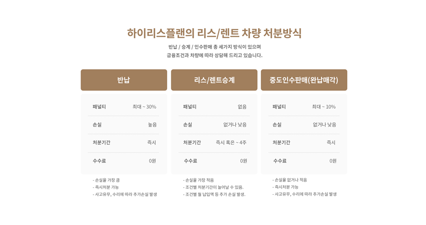 다시 판매를 할 때 복잡한 중도 인수/중도 반납/리스 승계 중 어떤 방법으로 이용해야