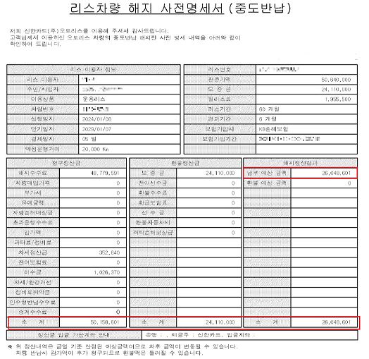 기존에 반납 시 규정손해 배상금으로 인한 26,048,601원